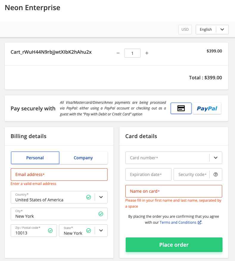 If you hold a VISA/Mastercard/Amex or PayPal, use the PayPal option. You can connect to your PayPal or checkout as guest. PayPal will ask for your card information to process the transaction (if you are not using PayPal).