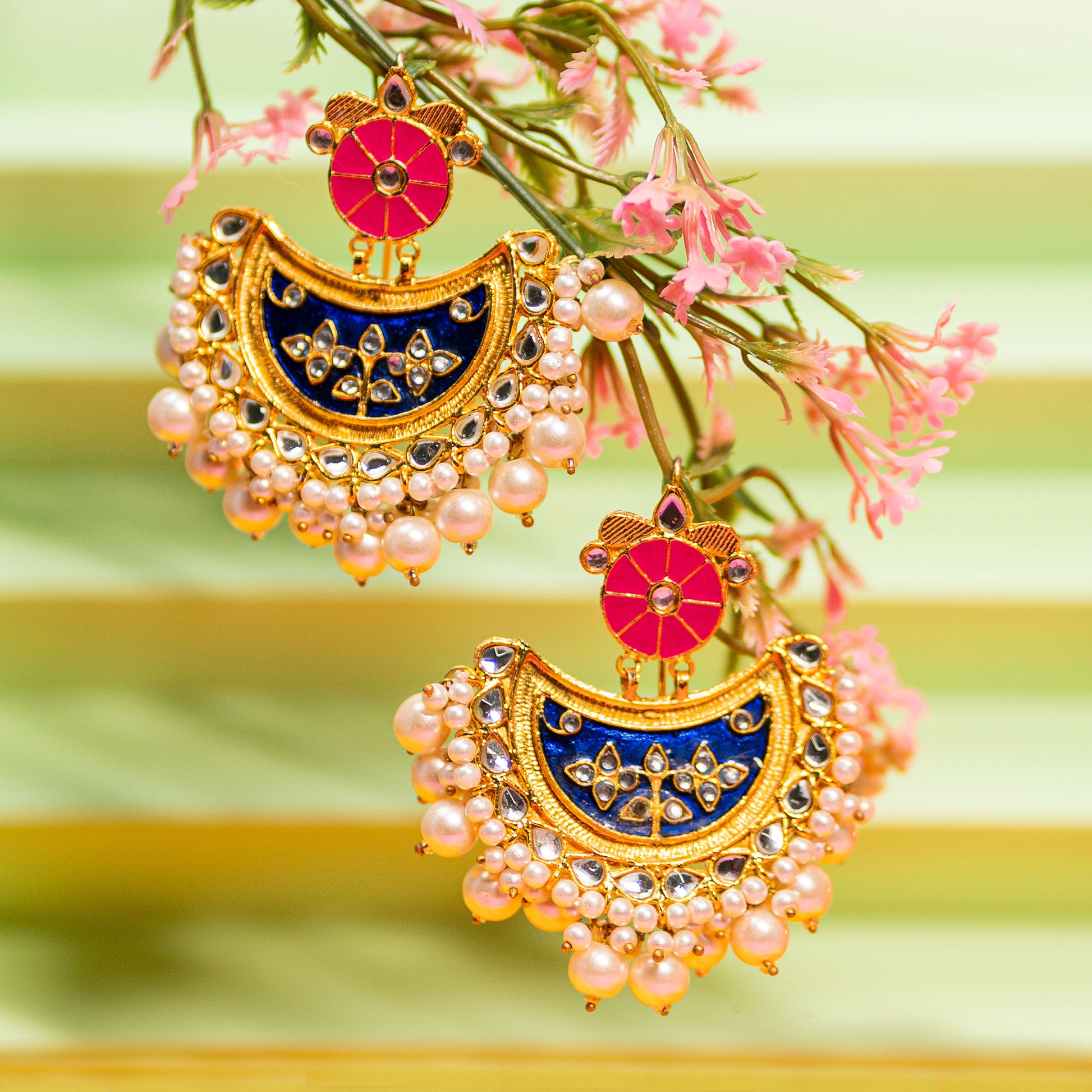 Introducing our exquisite Chaandbali earrings, a fusion of traditional artistry and contemporary elegance. Crafted with meticulous detail, these earrings boast a stunning Meena lacquer color that adds a vibrant touch to any ensemble.