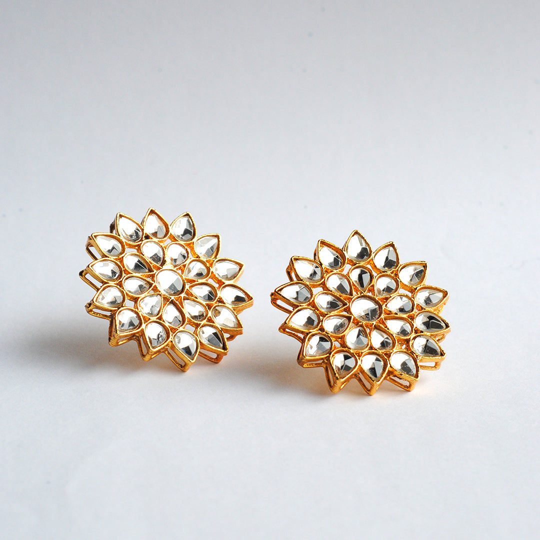 Our snowflake-inspired earrings are a delicate ode to the enchanting beauty of winter. Each motif, measuring 2 inches, captures the intricate elegance of a snowflake, adorned with small mirror work for added sparkle.